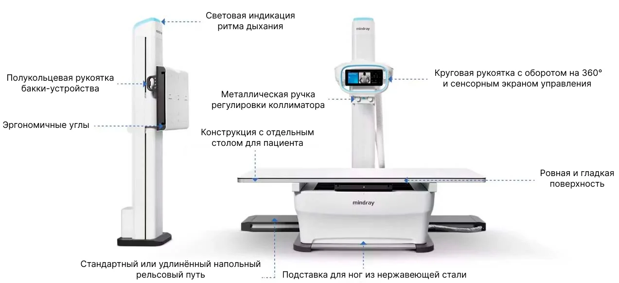 Моторизированность системы упрощает работу рентгенолаборанту с настройкой положения штативов рентгенодиагностического комплекса.